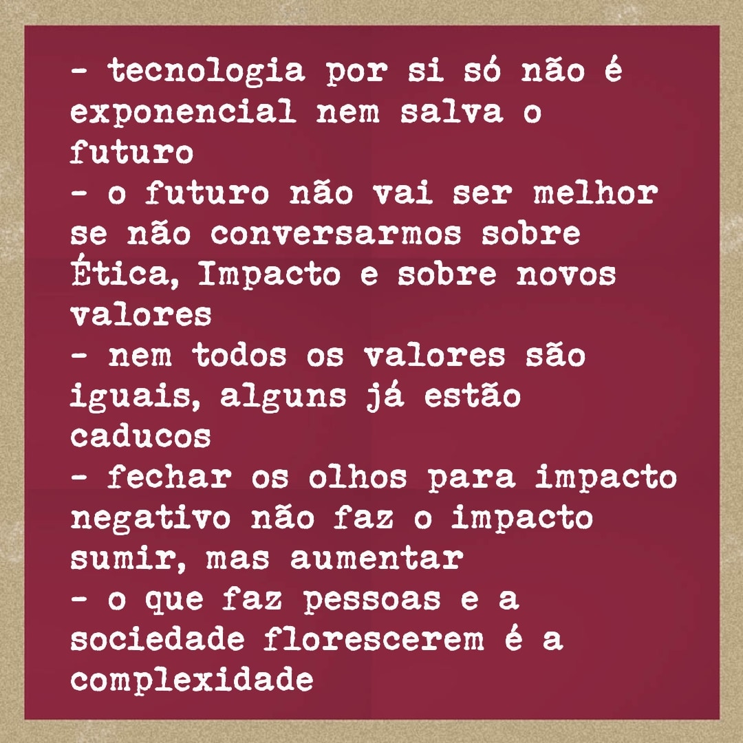 – o futuro não vai ser melhor se não conversarmos sobre Ética, Impacto e sobre novos valores